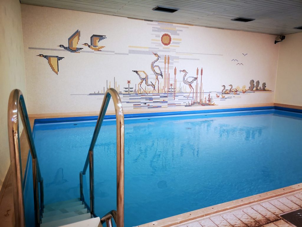 Zur Wohnung gehört ein Tiefgaragenstellplatz. Die Ferienwohnanlage bietet ein Hallenschwimmbad, Sauna und Fitnessraum, Spielzimmer und Spielgeräte im Freien für Kinder und vieles mehr.
